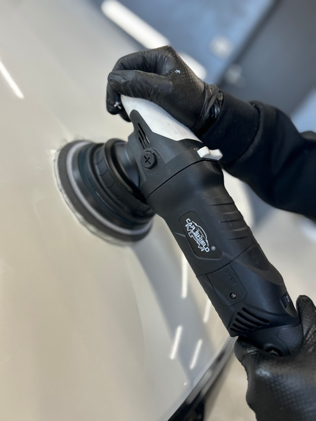 Car Shield社・ギヤ駆動ポリッシャー この製品の特徴は、 ①ダブルアクションポリッシャーに慣れている人でも扱い易い右回転のギヤ駆動ポリッシャー ②お求め易い価格(シャインメントのDAポリッシャーとほぼ同価格帯) ③2.3kgと軽量(消費電力1,200W、過負荷保護装置付き) ④トリガー変速と変速ダイヤル付き(定速度制御・ソフトスタート、210〜470rpm.) ⑤5“と6”のパッドが標準付属 ⑥8mmオービット ⑦D-ハンドル付き 色は黒のみになります。 触った感じは非常に軽く、ギア式なのにとても扱いやすい商品になります。ダブルだともう少し研磨力がほしいと言った方には非常にオススメになります。 ※在庫がない場合は、取り寄せにつきお時間をいただく場合がございますので、ご了承下さい。